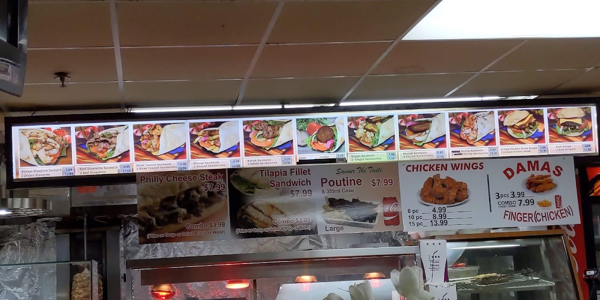 Welcome to Damas Grill House & Juice Bar, where a vibrant array of flavors awaits you at 1795 Victoria Park Ave, Scarborough, ON M1R 1T2, Canada! Our menu is a celebration of Mediterranean cuisine, featuring irresistible specialties that blend freshness and tradition. Dive into our Tahini Salad Shawarma or savor the zest of a Greek Salad Shawarma – each dish crafted to tantalize your taste buds. If you're in the mood for something refreshing, don’t miss our Fattoush Salad variations or the delightful Tabouleh paired with your choice of Shish Tawook, Shooaf, or Kabab. And for the meat lovers, our Chops with any salad are sure to satisfy. Come treat yourself and discover why Damas Grill House & Juice Bar is a must-visit dining destination!